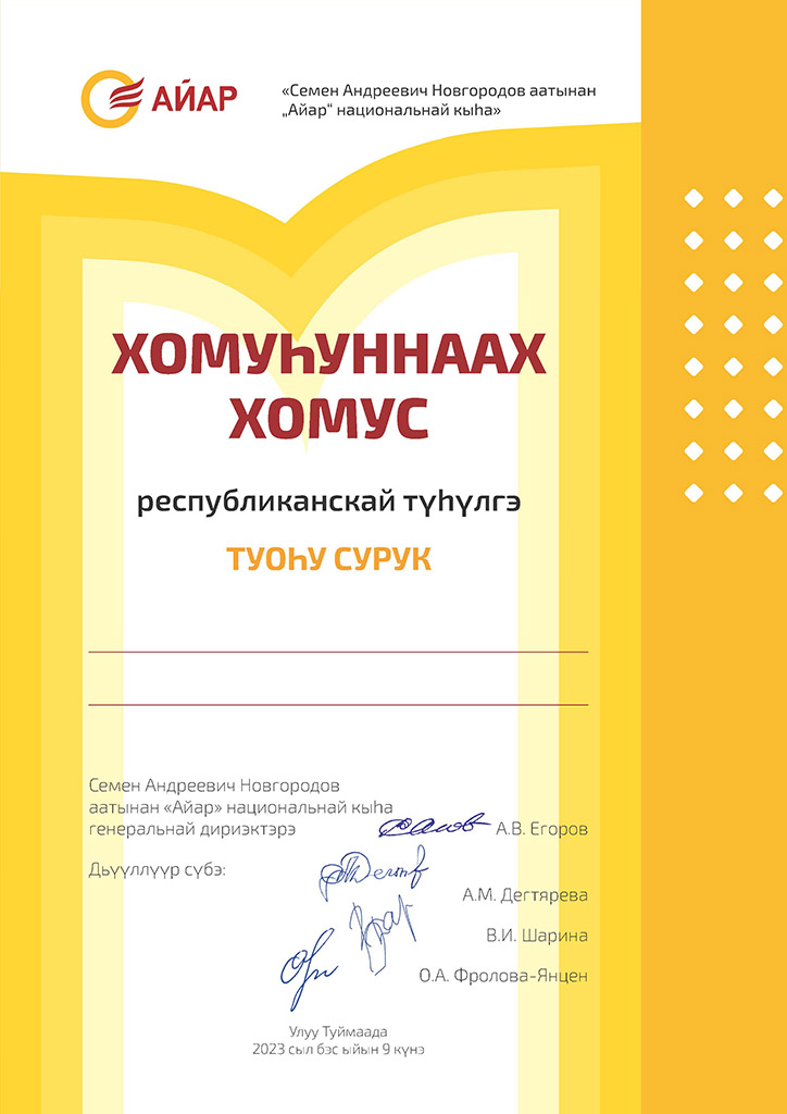 Салайааччы: Т.С. Михайлова, Е.В. Атласова